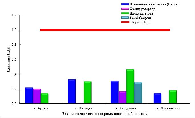 В целом уровень загрязнения атмосферного воздуха в сентябре 2025 г. в гг. Артём, Дальнегорск, Уссурийск и Находка оценивался как «низкий», как и в аналогичный период 2024 г.