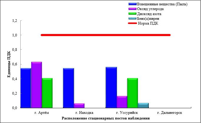 Мониторинг загрязнения атмосферного воздуха на территории Приморского края выполняется в гг. Артём, Находка, Уссурийск и Дальнегорск. В каждом городе установлен один стационарный Пост наблюдения за загрязнением атмосферы (ПНЗ) Государственной наблюдательной сети (ГНС).